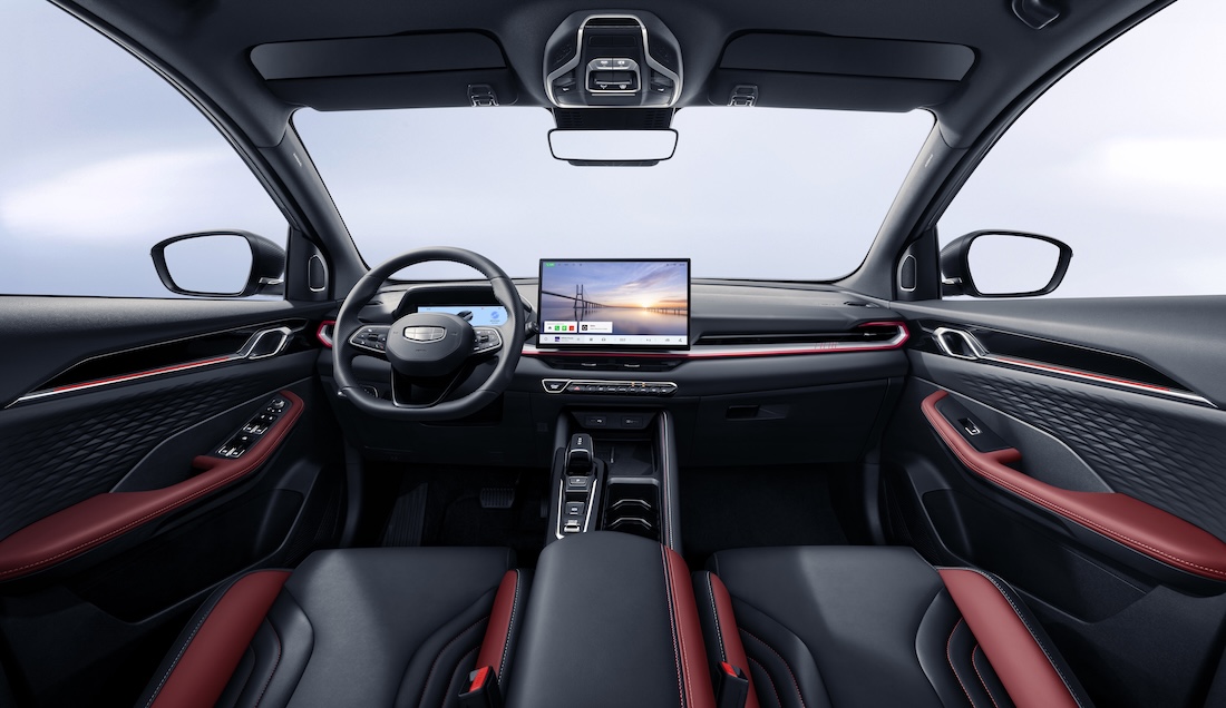 Интерьер нового Geely Coolray обзавелся новым оснащением — у него цифровая приборная панель диагональю 8,8 дюйма, мультимедиа с экраном 14,6 дюйма и операционная система Flyme. К этому прибавляем полный пакет зимних опций, включая электрический обогрев всего лобового стекла.