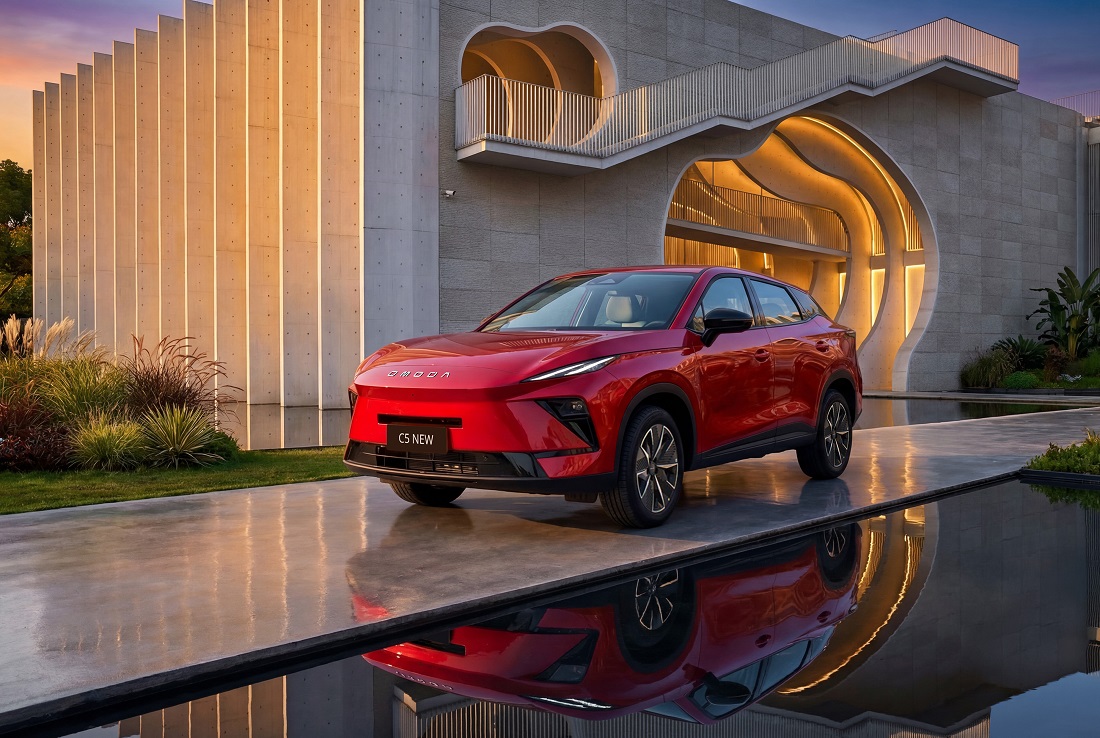 Omoda С5, как и Jaecoo J6, была представлена вживую впервые. Модель с внешностью в стиле старшего кроссовера C7 позиционируется как кроссовер нового поколения. Длина автомобиля увеличилась на 140 мм и составляет 4540 мм при той же колесной базе 2630 мм. Фишка внешности – отсутствие привычной радиаторной решетки. Предусмотрен лишь нижний воздухозаборник. Сзади изменены форма оптики, капота, бампера, дополнительно появилась узкая прорезь над площадкой под номер. Хотя на презентации не продемонстрировали салон новинки, сквозь стекла было хорошо видно, что модель получит узкую цифровую приборку и медиасистему с центральным экраном, увеличенным до 15,6 дюйма (сейчас 10,25 дюйма). Система поддерживает беспроводной протокол Apple CarPlay. В оснащение войдут шесть подушек безопасности, беспроводная зарядка на 50 Вт и полный зимний пакет.