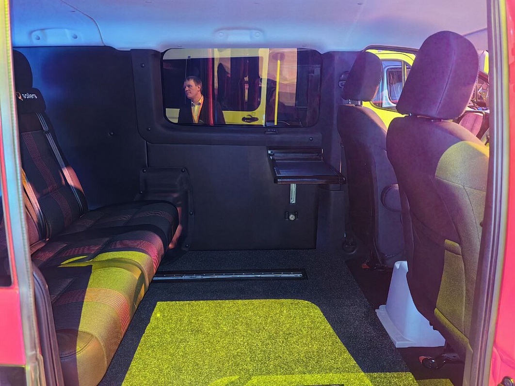 Грузопассажирский вариант представлен в компоновке 4+1 с вместительным грузовым отсеком (2,9 м3). Между кабиной и грузовым отсеком предусмотрена сдвижная перегородка. Поскольку диван сдвигается продольно, объем грузового отсека варьируется с 2,5 до 5,15 м3. Агрегатная связка – точно такая же, как в пассажирском исполнении. В оснащение входит сдвижная дверь по правому борту и рельсы на полу кузова для регулировки положения заднего дивана. За компоновку салонов обеих новинок отвечали специалисты Елабужского филиала «СТ-Нижегородец», который выступает в качестве придворного ателье завода «Соллерс Алабуга».