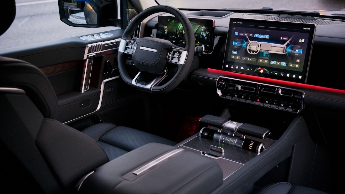 Интерьер внедорожника продуман до мелочей — «каждый элемент направлен на обеспечение максимального комфорта, удобства и технологичности», боковые двери — с доводчиками. Пользование мультимедиа, электронными ассистентами и приложениями облегчает русифицированное меню с функцией Apple CarPlay. «Зимний пакет» теперь включает подогрев руля.