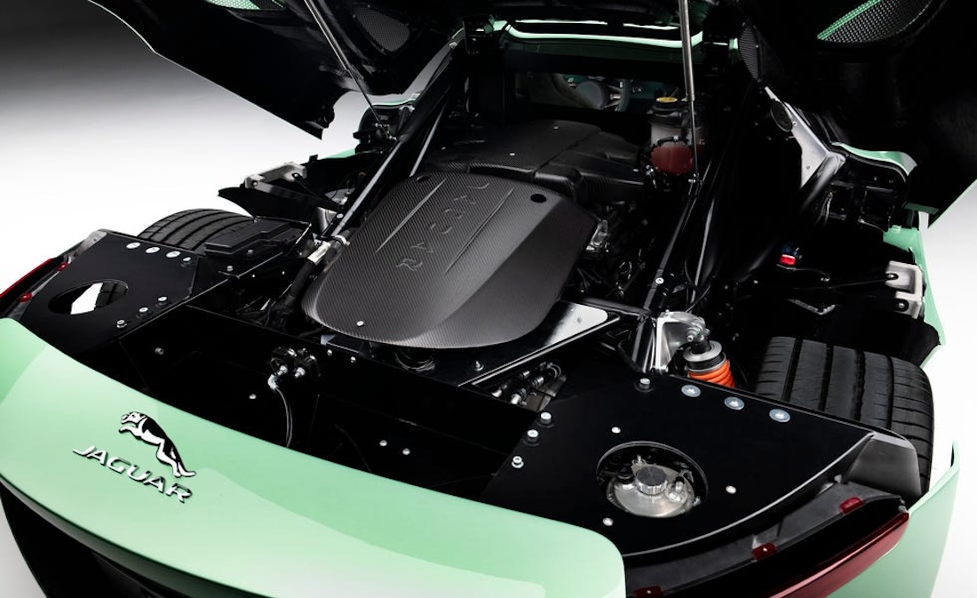 Мощность по-прежнему обеспечивается 5-литровым V8 с наддувом, первоначально позаимствованным у Jaguar F-type, разве что отныне он работает с 7-ступенчатой коробки передач с двойным сцеплением, заменившей секвентальную гоночную коробку передач, которая была установлена на каскадерском автомобиле. Система настроена для сбалансированного повседневного вождения, но Каллум запрограммировал более четкий «спортивный» режим, который обеспечивает и более быстрое переключение передач, и более отзывчивую педаль газа, и более звучный звук выхлопа.