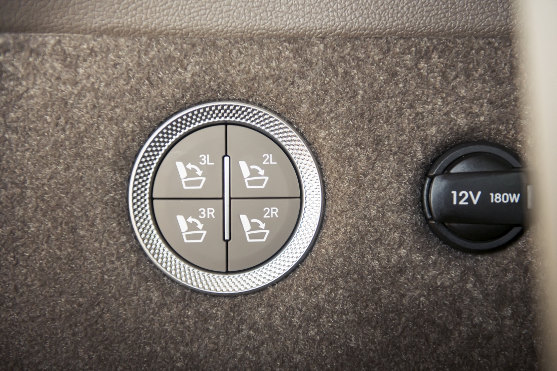 Закрыть сделанные из алюминия двери помогают доводчики. Мягкие и широкие передние кресла обволакивают тело. Просторный задний диван и опциональный третий ряд сидений вместят еще пятерых пассажиров. Для первых двух рядов можно заказать вентиляцию сидений. Кнопка электропривода багажной двери спрятана в основании щетки очистителя. Сам грузовой отсек достаточно просторный, конечно, если не разложен третий ряд сидений.