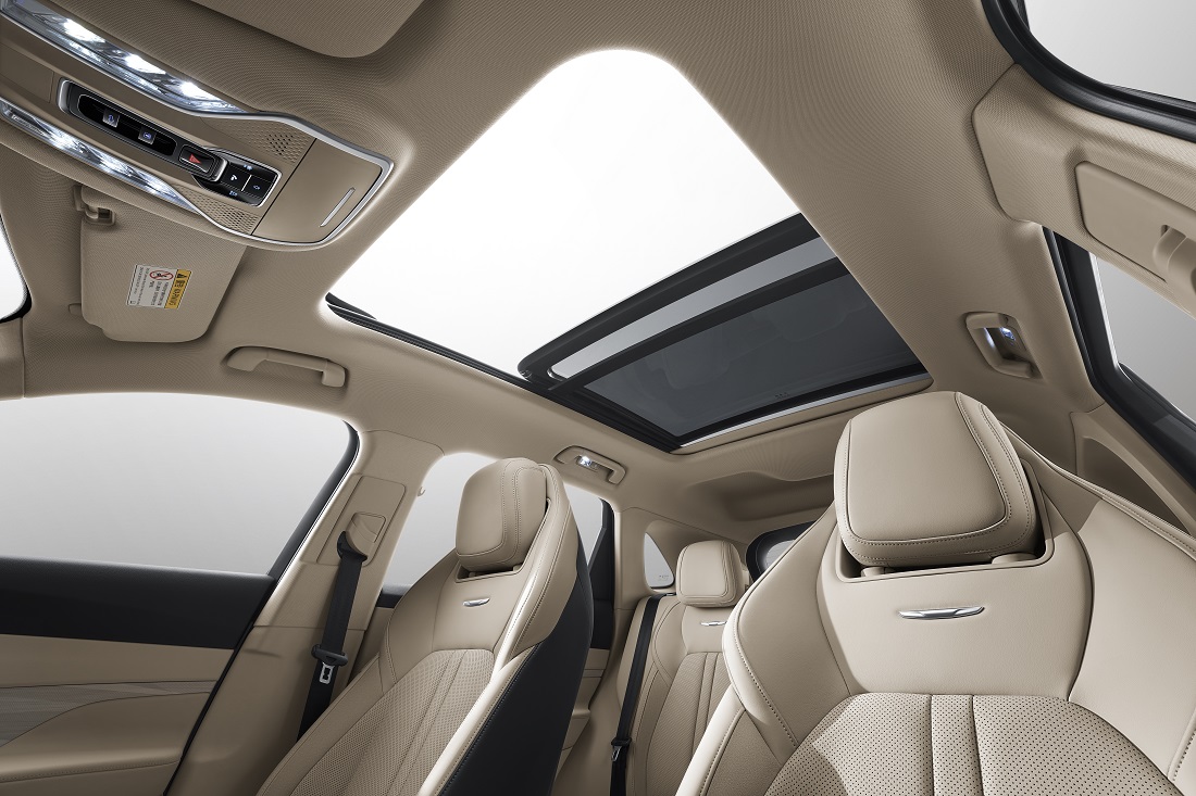 Уже в базовой версии предусмотрены шесть подушек безопасности, адаптивный круиз-контроль с электронными ассистентами, кожаная отделка салона, цифровая приборная панель с проекцией на лобовое стекло, аудиосистема Dynaudio с двенадцатью динамиками, беспроводная зарядка спереди и сзади, панорамная крыша с люком, трехзонный климат-контроль, электропривод сдвижных и багажной двери и многое другое.