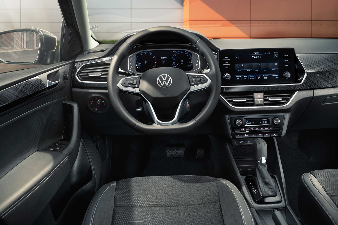 В конфигурации и оформлении интерьера прослеживается тенденция усилить дух презентабельности. Благодаря уверенным горизонтальным линиям, точеному козырьку «приборки» и крупным центральным сенсорным экранам (с диагональю 6,5 или 8,25 дюйма), равно как более модным, чем прежде, декоративным накладкам, Polo стал выглядеть настоящим франтом. Старшие комплектации демонстрируют и вовсе едва ли не премиальный лоск. Скажем, только в топовом исполнении Exclusive предлагается цифровая настраиваемая «приборка» и атмосферная подсветка пространства для ног. Рулевое колесо с усеченным нижним сектором позаимствовано у модели Golf. Начиная с комплектации Status оно является мультифункциональным, отделано кожей и имеет функцию подогрева.
