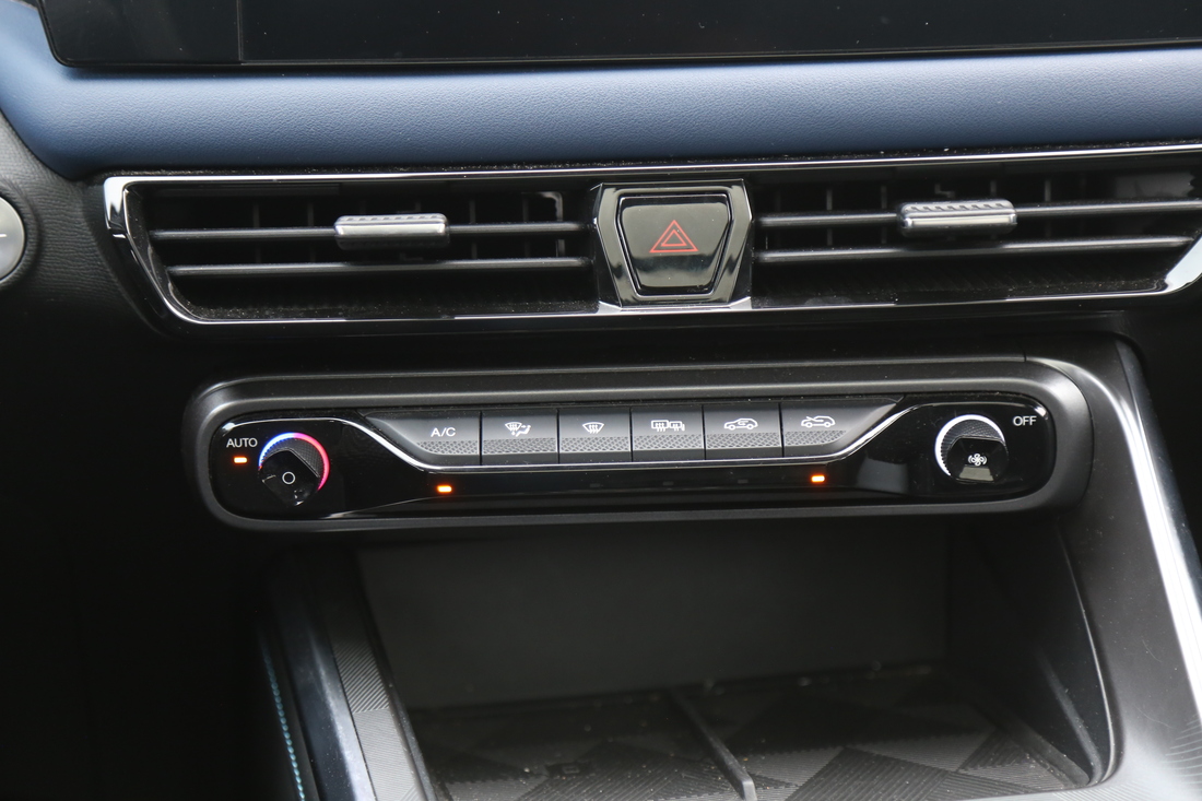 Витиеватые кузовные грани, фаски и перегибы GAC GS3 выглядят, что ни говори, эффектно, а скрытые в кузове дверные ручки и вовсе авангардно. Кроссовер выделяется в потоке, на него смотрят, его пропускают соседи по движению, несмотря даже на компактные габариты 4410 х 1850 х 1600 мм. Автомобиль при этом оснащен высокоэффективной фронтальной оптикой, имеющей адаптивный режим включения и отключения дальнего света. Плохо лишь, что фары расположены в самом низу бампера — в плохую погоду они, конечно же, быстро становятся грязными. Аэродинамика кузова тщательно продумана. Например, в переднем бампере с рассекателем предусмотрены воронки воздушных каналов для охлаждения тормозов, а в мощный задний спойлер вписан стоп-сигнал задней светотехники. Важно и то, что по меркам кроссоверов у начальной модели GAC, можно сказать, «городской» клиренс. Хотя производитель заявляет вполне джиперские 180 мм, по факту от защиты картера двигателя до земли всего 140 мм, так что при движении по проселку нужно быть аккуратнее. Но в чем же состоит фишка этого стиляги?
