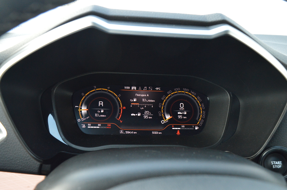 Сделан шаг вперед и в начинке топового варианта цифровой «приборки»: оформления стало значительно больше, на щиток можно вывести даже карты навигатора. Очень порадовало и то, что в одной из тем имеются крупные цифровые индикаторы спидометра, а шкалы, от которых рябит в глазах в других вариантах оформления, отсутствуют! Именно к такой лаконичности компоновщикам нужно стремиться.