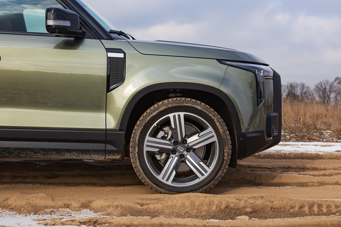 Наконец, эта машина не ударит в грязь лицом на бездорожье. Углы въезда, съезда и рампы составляют 22,2, 25,1 и 19,7 градуса соответственно, глубина преодолеваемого брода — 700 мм, а на подходящих шинах автомобиль сможет заехать в 45-градусный подъем. Полноприводная трансмиссия, реализованная по схеме «два электромотора — на каждой оси», работает эффективно. Бортовой компьютер в режиме реального времени анализирует сцепление колес с дорогой (датчики ABS, системы курсовой устойчивости), определяет, на какую ось и какое колесо нужно подать больший момент, и мгновенно перераспределяет мощность между передним и задним моторами.
