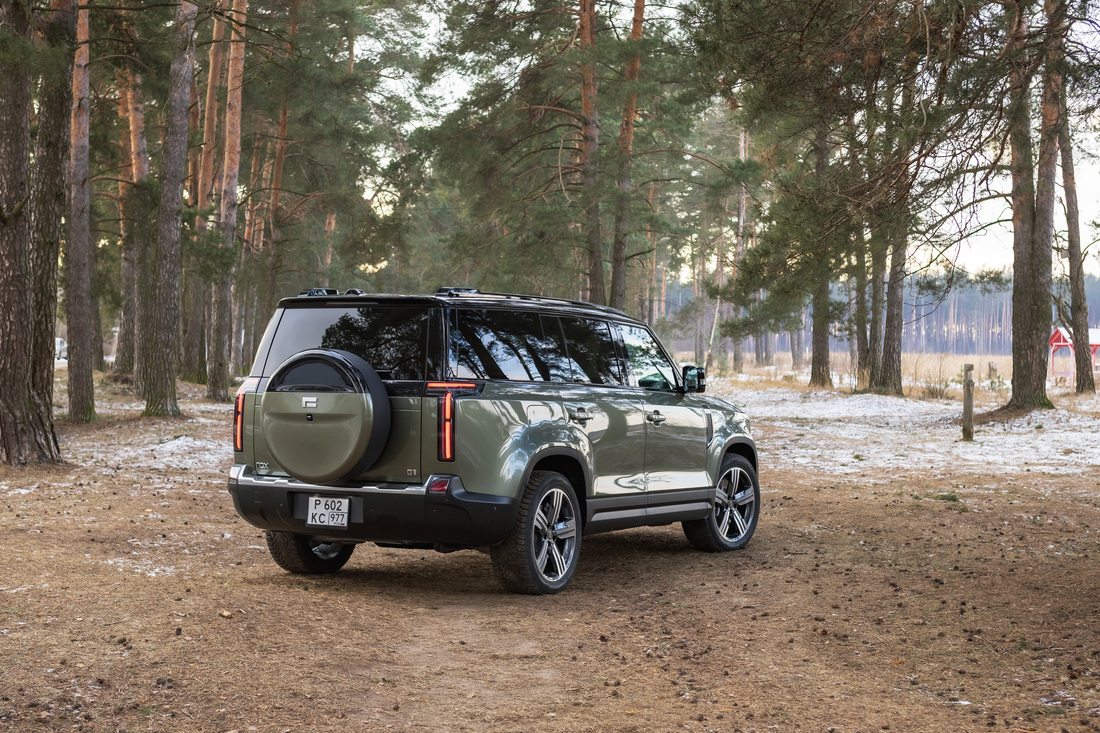За стиль Rox 01 отвечало китайское подразделение итальянского дизайн-ателье Pininfarina. В результате большой SUV (5295 х 1980 х 1869 мм, колесная база — 3010 мм) получил брутальную внешность в стиле Land Rover Defender (что, видимо, было частью техзадания), но с едва уловимым итальянским флером. Рубленые формы кузова и большая площадь остекления отлично сочетаются с задачами маневрирования в городе, поскольку улучшают обзорность. Тем не менее массивные средние стойки и крупные подголовники с фирменными самолетными подушками несколько урезают боковой обзор. Набор камер кругового обзора, впрочем, компенсирует этот недостаток. Кстати, одна из камер встроена в кофр «запаски» на пятой двери, а сам бокс выполнен, быть может, более массивным, чем хотелось бы. Отметим также и такую важную деталь, как тонкие и прочные боковые подножки, выдвигающиеся с помощью сервопривода, — вещь явно не лишняя, особенно если водитель и пассажиры не самого высокого роста. Система бесключевого доступа, кстати, реализована во всех дверях, но доводчик есть только на задней, багажной. Дорожный просвет составляет 205 мм, и этот параметр нельзя изменить, поскольку пневмоподвеска с функционалом изменения клиренса для этой модели, по крайней мере пока, не предлагается.