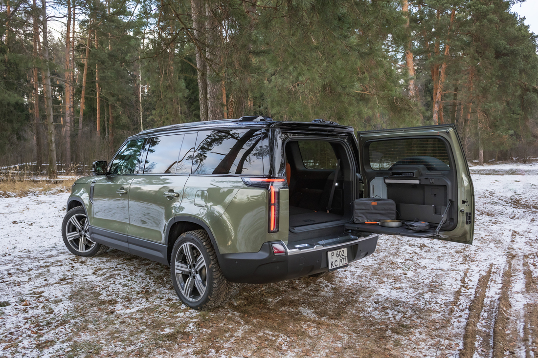 Еще одна интересная опция — целый инструментарий туриста в нише пятой двери. За доплату тут могут храниться столик, посуда, сковородка и встроенная емкостью для питьевой воды с кипятильником. Также в багажнике есть свет, а светильник можно вынуть и использовать в качестве походного фонарика.