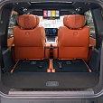 Второй ряд — прибежище пассажиров, ценящих простор и удобную посадку. Капитанские кресла семиместного варианта имеют подогрев (3 уровня), вентиляцию (3 уровня), электрорегулировки, функцию массажа и умение раскладываться в подобие шезлонга. Еще более шикарные «троны» 6местной версии предлагают дополнительно оттоманку, 8точечный массаж SPAуровня, выдвижную оттоманку и технологию Zero Gravity для отдыха в дальней дороге. Впечатлили и возможности трансформации сидений через большие дисплеи на первом и втором рядах. Нужно нажать несколько кнопок в меню, и сиденья двух первых рядов начинают медленно сдвигаться, образуя из кресел второго и третьего ряда широкое спальное место.